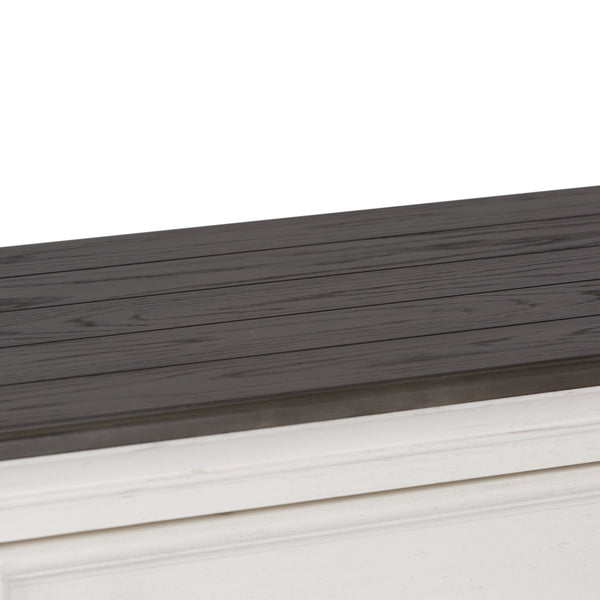 Create a classic cottage style with this 8-drawer dresser. The two-toned wire brushed white finish with charcoal top adds a taste of vintage, allowing this piece to work from the mountains to an industrial loft. The charcoal top is accented by planks while the white base is highlighted by bead molding and antique pewter hardware. Style uncompromised with storage abound, enjoy the many drawer sizes, each equipped with bottom case dust proofing.