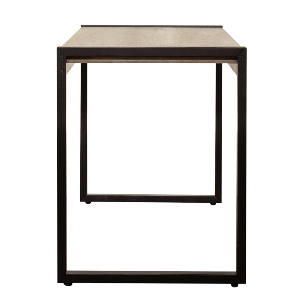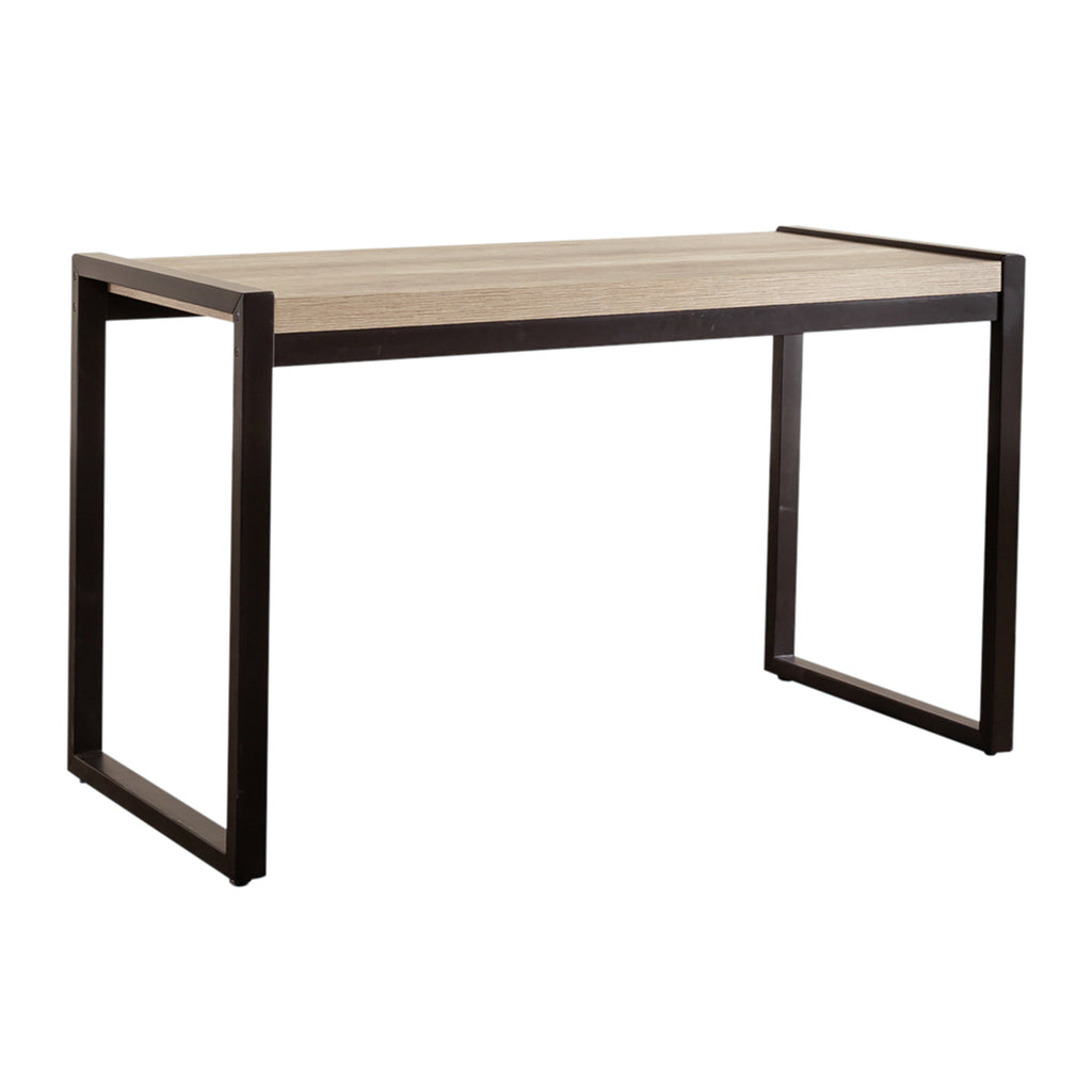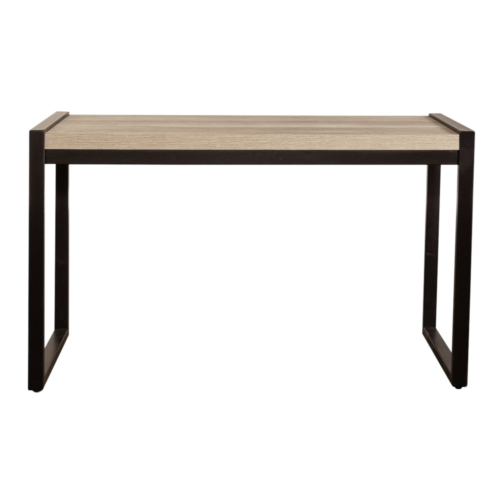 Move away from the traditional and bring in a clean and simple look with the Sun Valley writing desk. Crafted of a rubberwood solid frame and melamine, this piece features a sandstone finish. This desk has a floating top design with open ends that are finished to look like a dark pewter metal. The melamine provides a surface protection against scratches and wear and tear. Clean lines and small scale create the perfect balance for condo’s, lofts, or second bedrooms.
