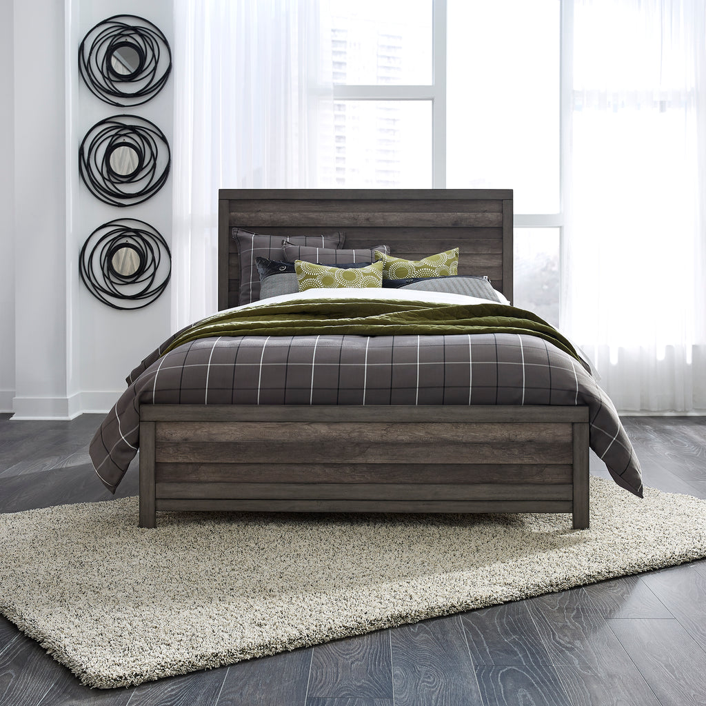 Surround yourself with the urban Tanners Creek panel bed. The Greystone finish features solid wood strip onlays that create a high/low effect, creating a beautiful finish. Crafted from melamine and rubberwood solids, the melamine provides surface protection against scratches, wear, and tear. Hook-on rails and a center supported slat system ensure that this is a sturdy and reliable bed. The clean lines and small scale make this a perfect piece for a condo or second bedroom.