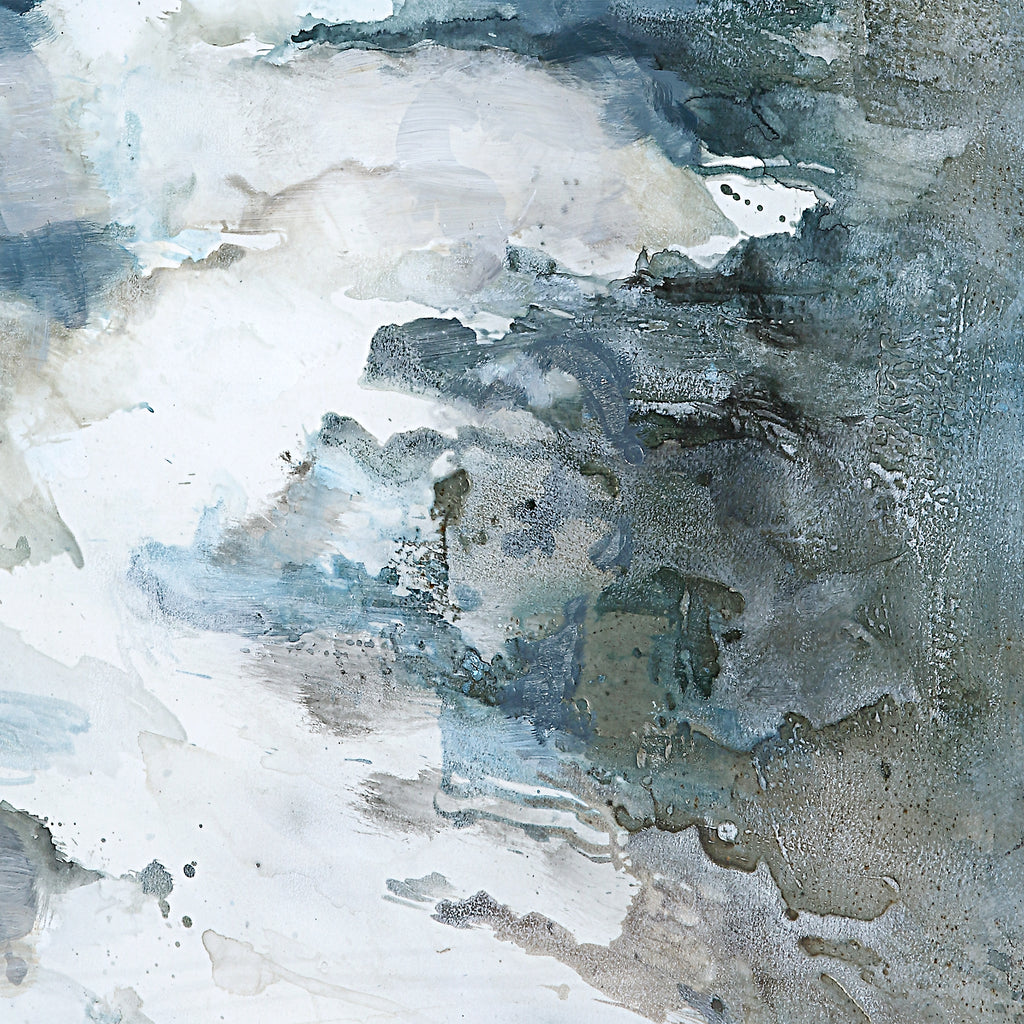 Hand Painted On A Metal Sheet, This Contemporary Artwork Features Shades Of Silver Leaf, Blue-green And White. Each Piece Is Placed Under Glass In A Black Shadow Box Style Frame Against A White Background. Due To The Handcrafted Nature Of This Artwork, Each Piece May Have Subtle Differences. May Be Hung Horizontal Or Vertical.