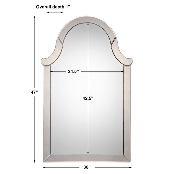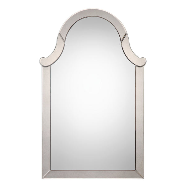 This Frameless Mirror Featuring Hand Beveled Side Mirrors, Displays An Impressive Arch Top.