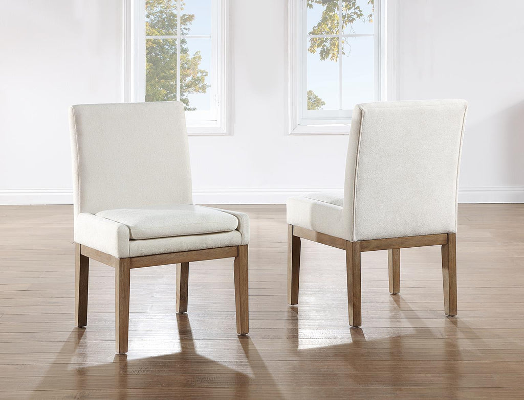 The Aubrey Parsons Chair: offers an elegant addition to the Aubrey collection that effortlessly elevates any room's ambiance. Crafted with an eggshell cover made from 100% polyester, this chair offers a perfect blend of comfort and style. Featuring a plush 6-inch cushioned seat, it provides unparalleled comfort for extended seating. The stylish driftwood finish, wire brushed and accented with waxy hangup, adds a touch of rustic elegance to any space. Whether for dining, as an office chair, or as a stylish accent piece in a living room, the Aubrey Parsons Chair is versatile and sure to brighten any room. Experience the perfect fusion of comfort and sophistication with Aubrey.
