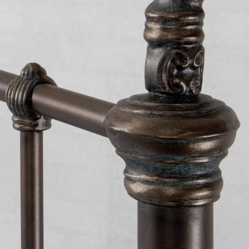 The Sheffield Iron Bed brings superior craftsmanship and custom beauty to the forefront of your master or guest bedroom. Constructed solid and sturdy by true artisans, the deluxe Sheffield Iron Bed exemplifies unsurpassed quality with a gorgeous vintage feel. A matching headboard and footboard include rolled top edges complemented by decorative, hand-poured castings. The open panels below are composed of seven durable rods adjoined with castings to match the top rail design. Stylish and chic, you can't resist the luxurious iron sleigh bed feel the Sheffield Iron Bed provides. Choose from a wide variety of unique finishes and create your own, made-to-order, Sheffield Iron Bed. Each finish is a blend of hand-applied powder coating paint baked on at extreme high temperatures resulting in a durable, rich finish for exceptional lasting color. The quality-built Sheffield Iron Sleigh Bed offers a strong, high-caliber frame ensuring superior mattress support to last a lifetime. Known as best in their craft, artisans have designed the gorgeous Sheffield Iron Bed with one-of-a kind artistic style resulting in sophisticated beauty you will love.