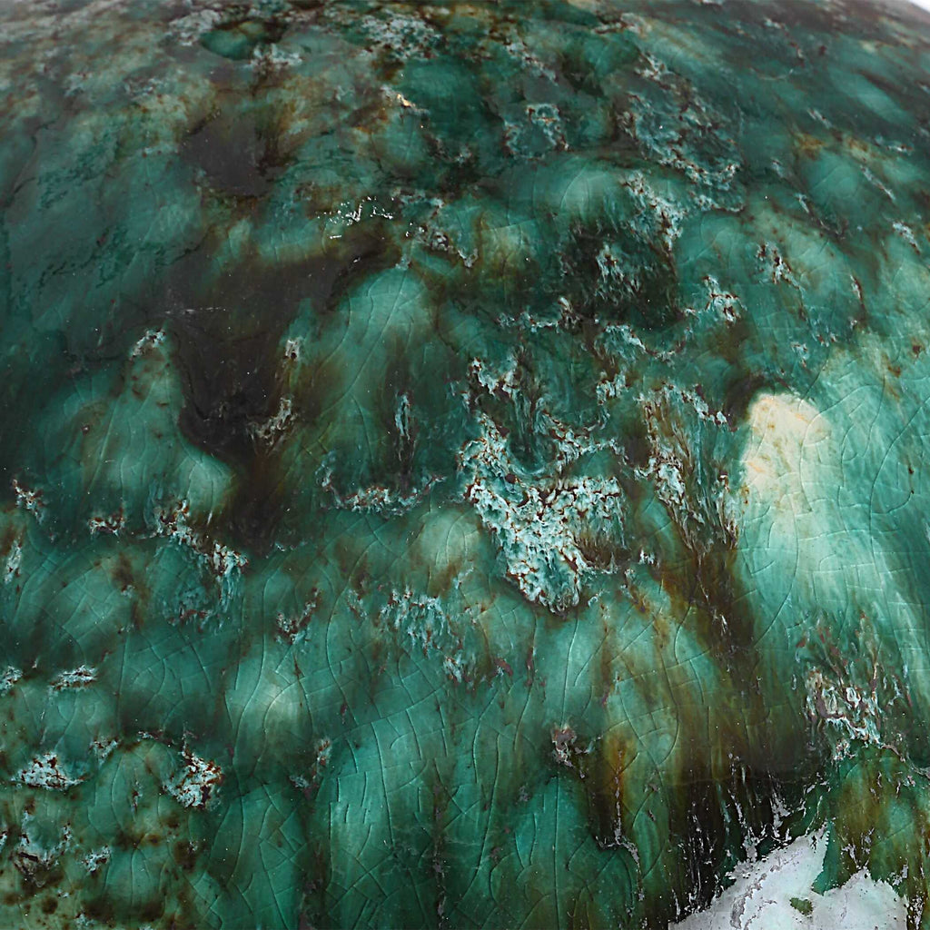 The Ceraline Table Lamp Features A Deep Emerald Green Drip Glaze With Subtle Rust Brown Undertones Paired With Brushed Brass-plated Details. The Round Hardback Drum Shade Is Covered In A Casual White Linen Fabric. Due To The Nature Of Fired Glazes On Ceramic Lamps, Finishes Will Vary Slightly.