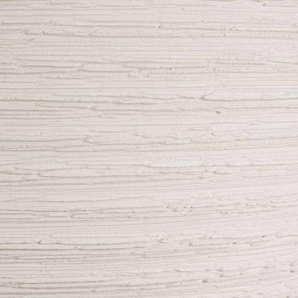 The Rocio Table Lamp Combines A Heavily Textured Ceramic Base With A Soothing Matte, Warm White Finish, Detailed By Horizontal Ridge Lines And Plated Antique Brass Accents. The Coolie Style Round Shade Is Covered In A Crisp White Linen Fabric.