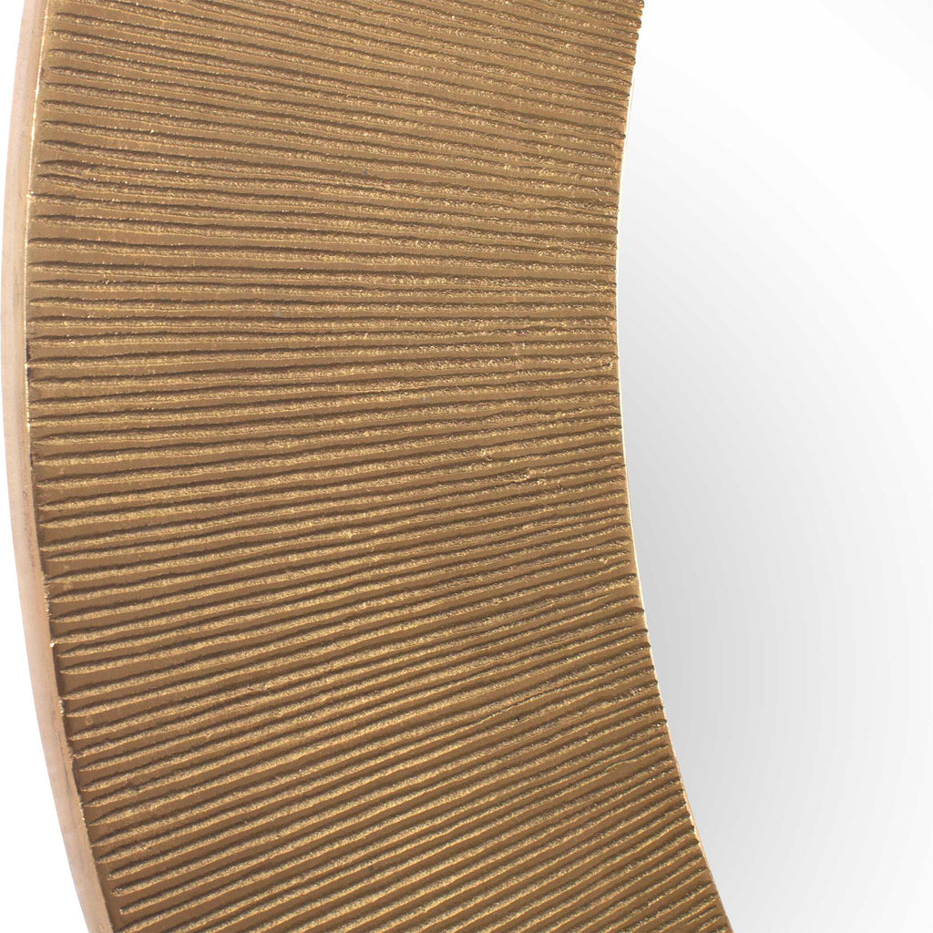 The Tano Round Mirror Features A Cast Aluminum Frame With A Refined, Channeled Texture, Finished In Plated Antique Brass.