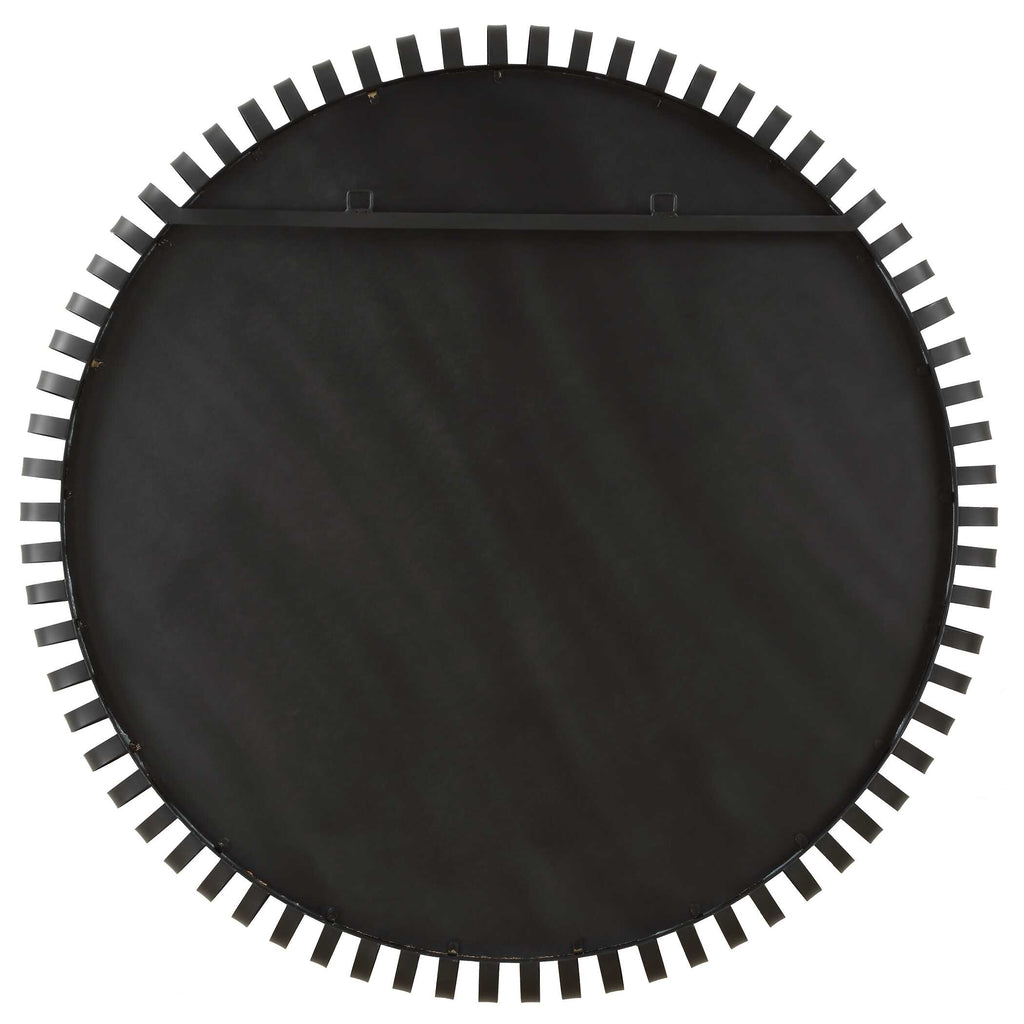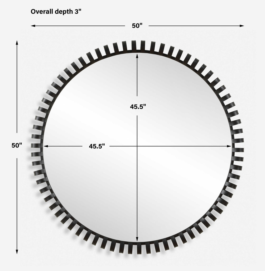 This Large Round Mirror Is Crafted From Solid Iron And Elegantly Finished In Satin Black. Its Commanding Presence Is Accentuated By Thick Rings Surrounding An Inner Band, Adding A Touch Of Contemporary Sophistication To Any Space.