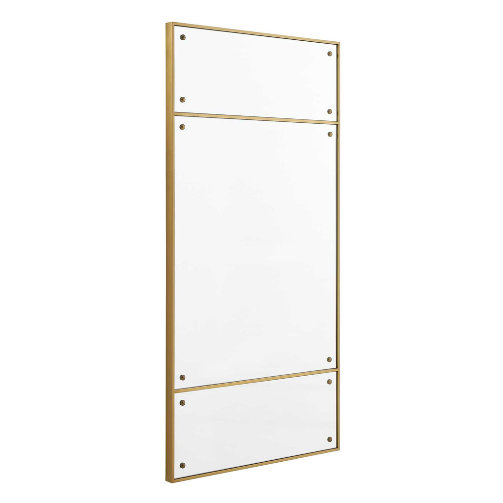 This Rectangular Mirror Features A Stainless Steel Frame Finished In A Rich Plated Brass, Complemented With Dark Bronze Button Medallions. May Be Hung Horizontal Or Vertical.