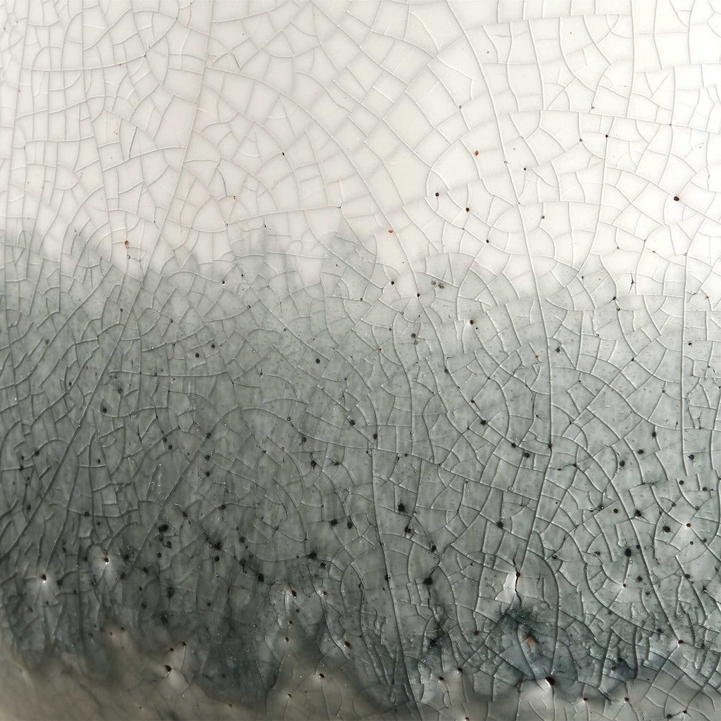 Elevate Your Home Decor With This Set Of Two Crackled Ceramic Vases. Finished In An Aged White And Adorned With Blue And Gray Mingling At The Base, These Vases Add A Modern Flair To Any Setting. Their Unique Textures And Colors Make Them Ideal For Displaying Floral Arrangements Or As Striking Decorative Accents. Sizes: S-7x5x7, L-8x6x8