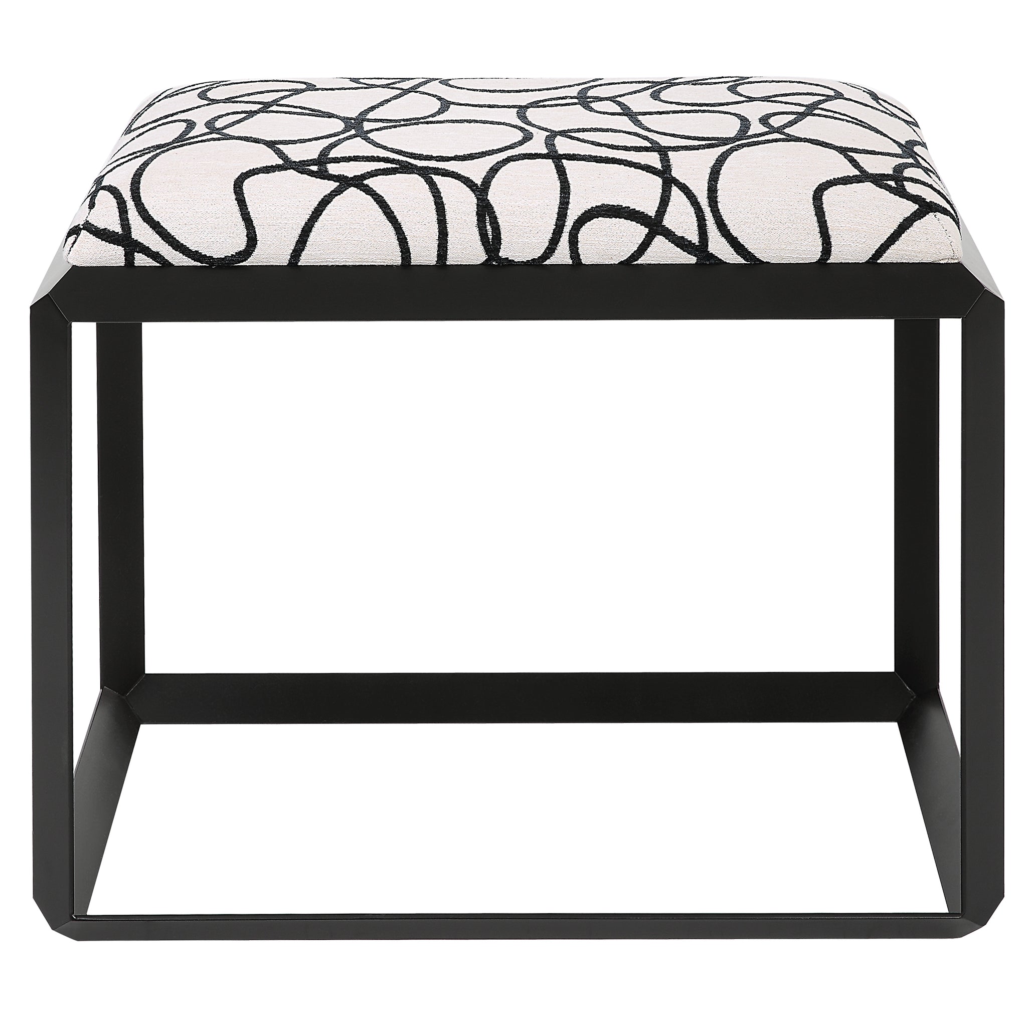 The Curls Small Bench Is Tailored In A Light Stone Gray Fabric With A Whimsical Curled Pattern, Atop An Angular Iron Frame In Satin Black.