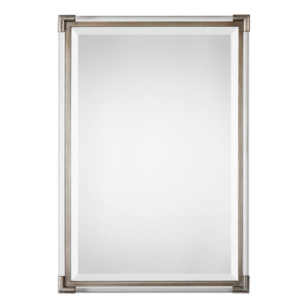 Clear Acrylic Rods Surrounding A Metallic Silver Leafed Metal Frame, Creating A Simple, Yet Elegant Mirror Piece That Adds A Taste Of Contemporary To Any Room. Mirror Is Beveled And May Be Hung Horizontal Or Vertical.
