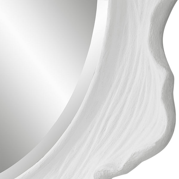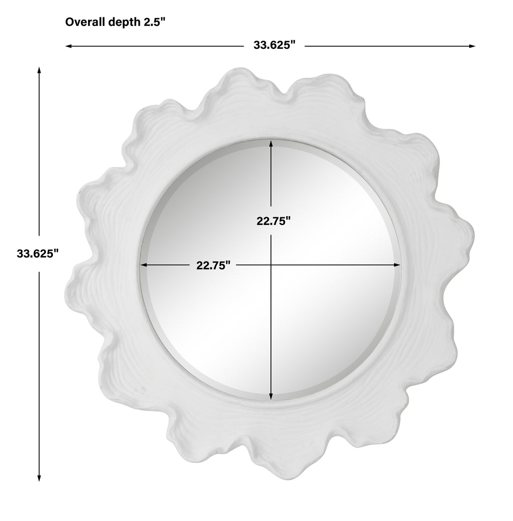 Reminiscent Of White Coral, This Round Mirror Showcases A Contemporary Coastal Design. The Organic Shaped Frame Is Finished In Matte White With Noticeable Waves And Texture.