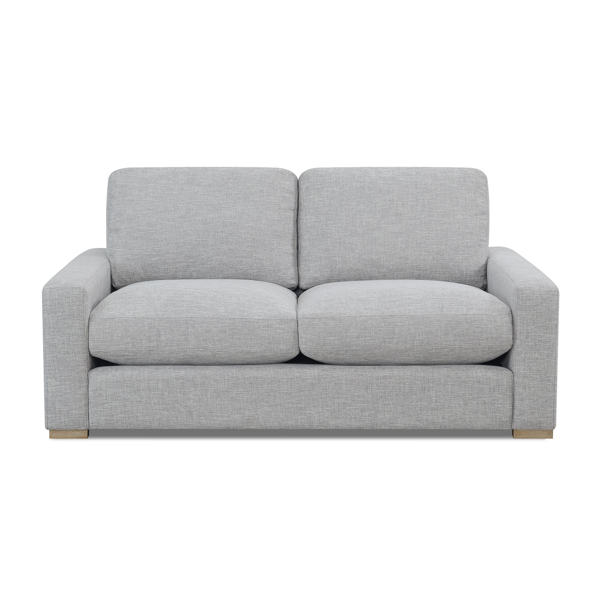 - Description: A low-armed loveseat with comfortable, square cushions upholstered in an impeccable tweed weave.