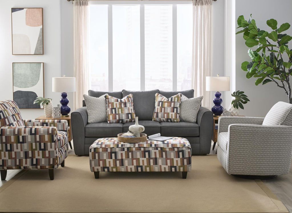 - High-resiliency foam cushions wrapped in thick poly fiber