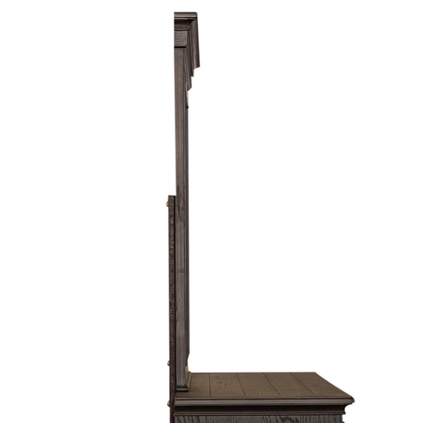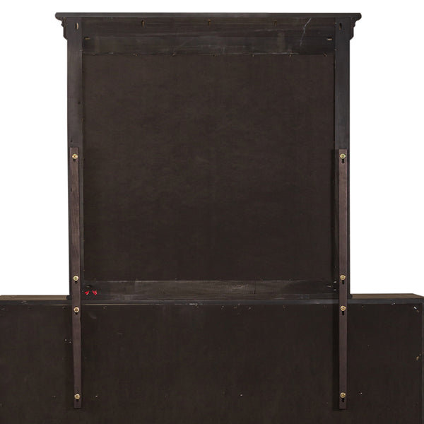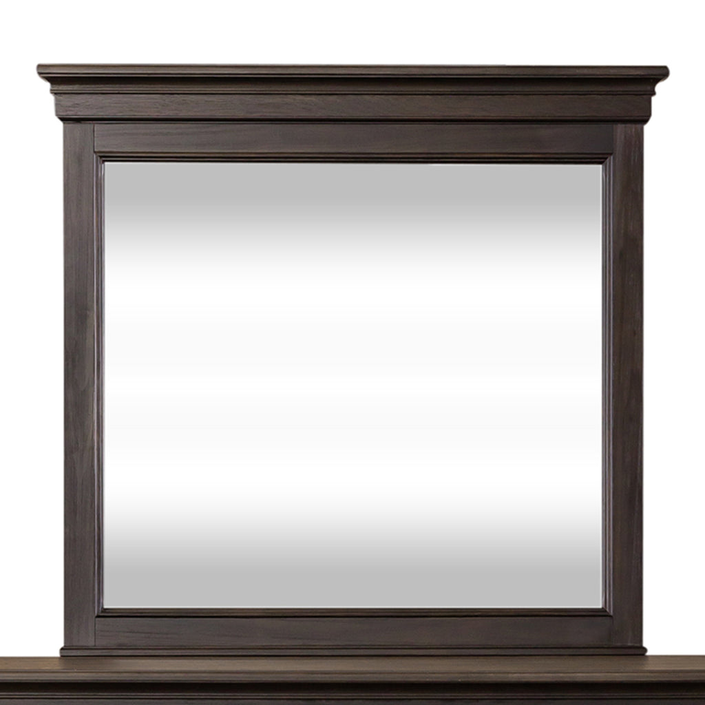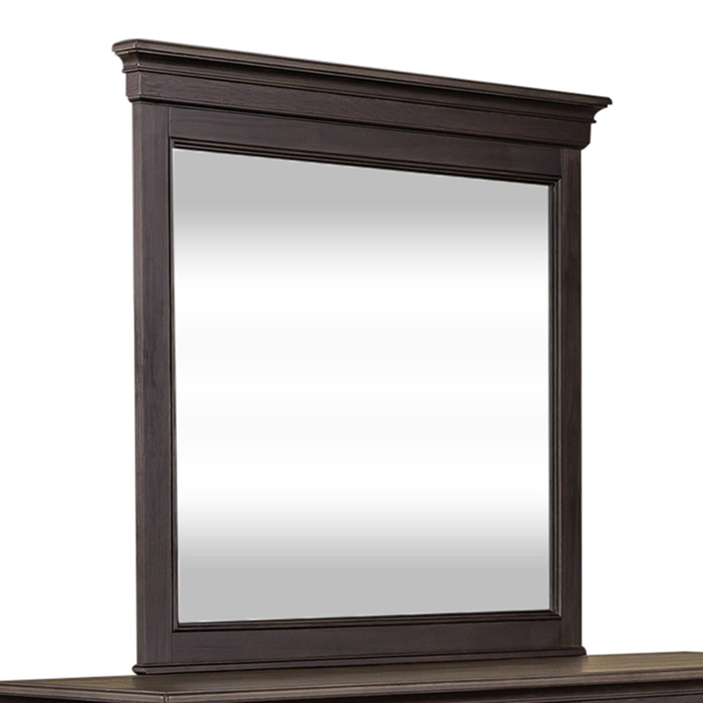Create a classic look with a casual feel using the Allyson Park crown mirror. Crafted of pine solids with cathedral white oak tops, this piece features a wire-brushed black forest finish with brown undertones and an ember gray cap rail. This mirror offers bead and crown molding, a beveled edge, and a wide landscape view. The included bolt-on supports give you the option to attach this to the Allyson Park dresser. Allyson Park offers cottage styles you love in a wire brushed two tone finish that will work from the beach to the mountains to an industrial loft.