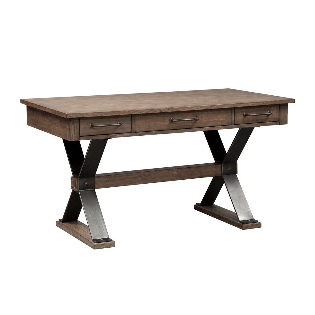Work from home or the office in comfort and style with the Sonoma Road complete desk. Crafted of poplar solids and cathedral hickory veneers, this set features a weather beaten bark finish, antique pewter bar pull hardware, block style pilasters and feet, full extension metal drawer glides for easy access to storage, and nail head accents. The credenza offers two file drawers, a flip down keyboard tray, two drawers, and wire management provisions. The credenza hutch features LED lighting to illuminate your space, sliding barn doors, and ample shelving and storage options. Sonoma Road establishes a natural feeling created by the living space as well as the furnishings that attribute to it.